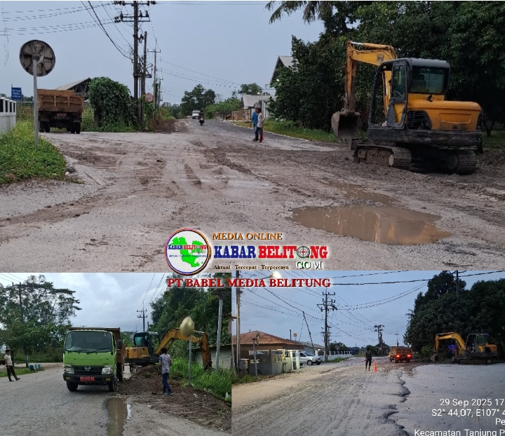 Belitung, kabarbelitung.com – Perbaikan jalan rusak di ruas jalan depan kantor PT AKU jalan murai oleh Dinas PUPR Kabupaten Belitung saat ini telah dikerjakan. Rabu (01/10/2025).