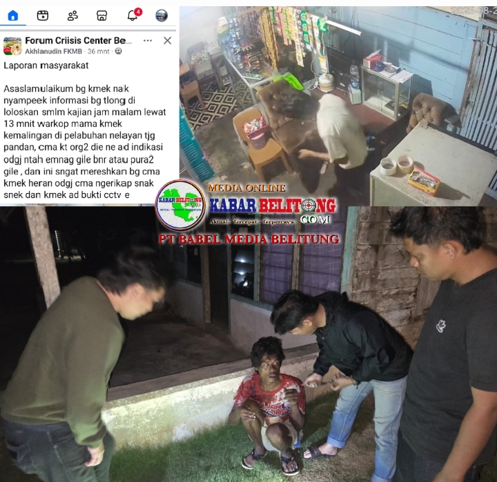 Belitung, kabarbelitung.com – Menindaklanjuti laporan masyarakat terkait dugaan tindak pidana pencurian di Jalan Pelabuhan Pasar Ikan Tanjungpandan yang sempat viral di Forum Facebook Crisis Center Masyarakat Belitung, Tim Opsnal Sat Reskrim Polres Belitung bergerak cepat dan berhasil mengamankan seorang laki-laki berinisial Rudi, Rabu (28/8/2025).